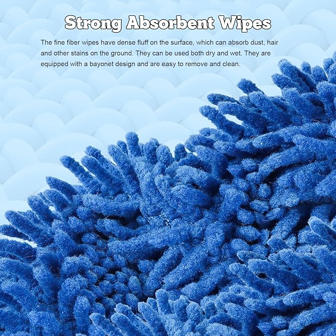 - Mop Haute Performance : Sa lingette circulaire en microfibre capture la saleté et absorbe l’humidité pour un sol impeccable sans traces.