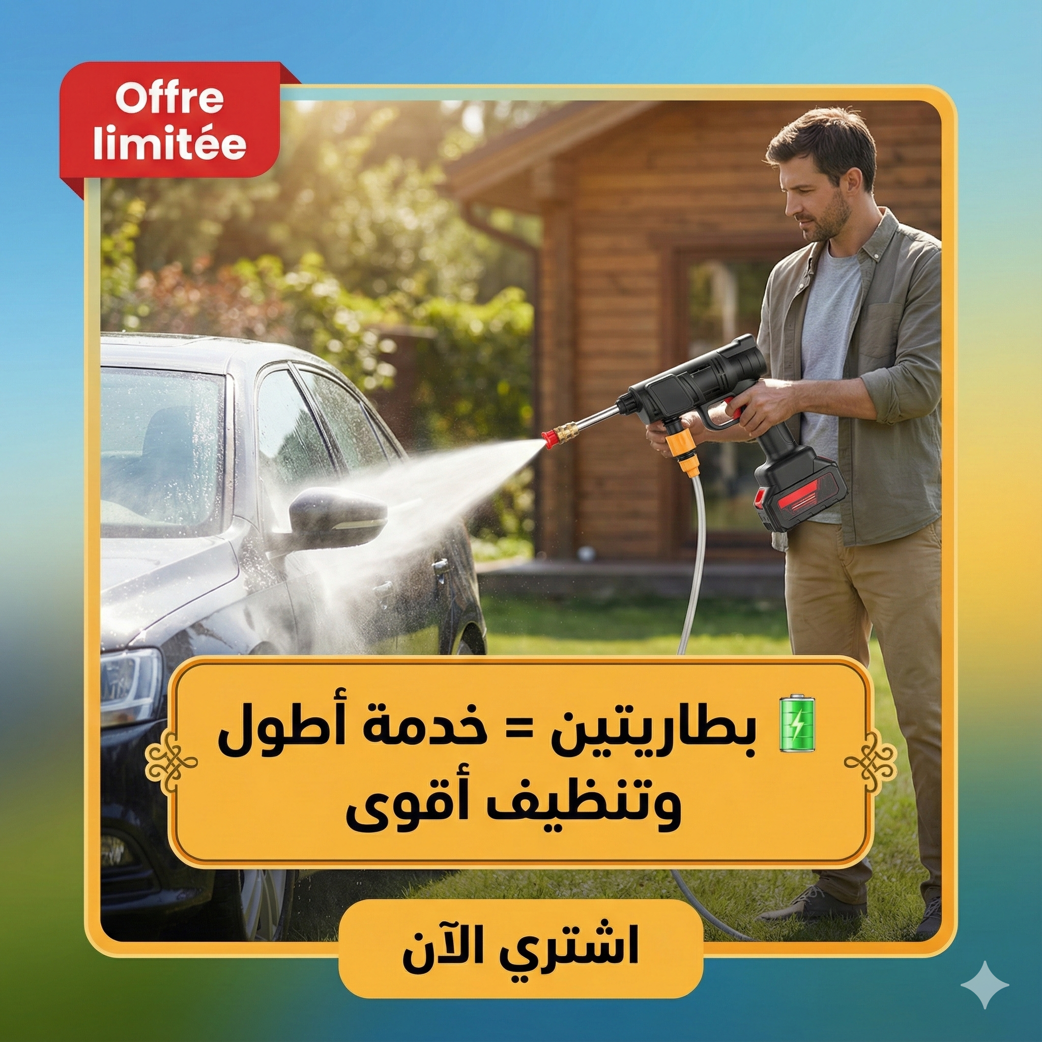 Le nettoyeur haute pression sans fil TANBABY est la solution idéale pour un nettoyage rapide et efficace de votre voiture, terrasse et jardin. Grâce à sa conception sans fil et à ses deux batteries 48V, il offre une grande liberté de mouvement et une excellente autonomie.